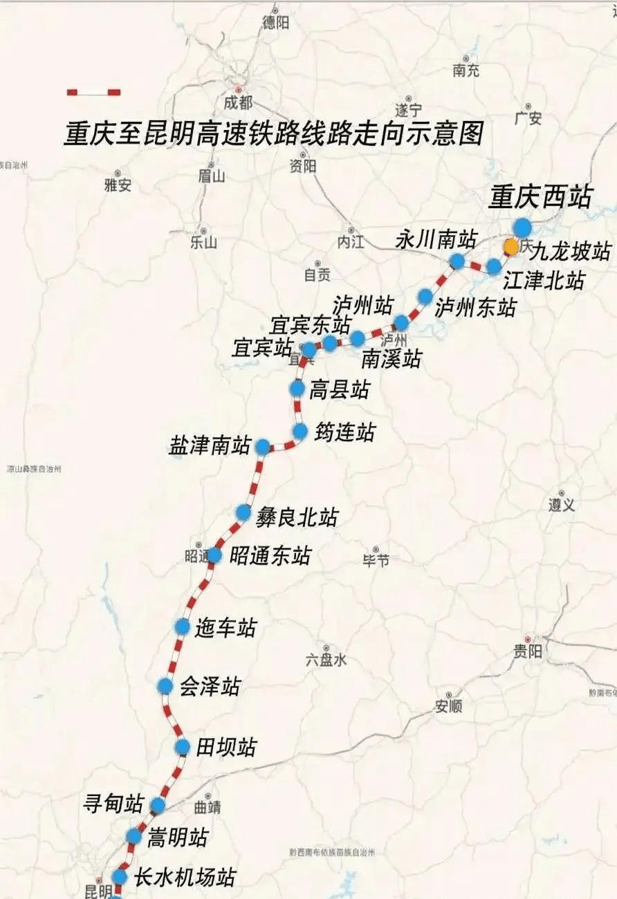 渝昆高速铁路是国家中长期铁路网规划“八纵八横”高铁主通道京昆通道(北京-昆明)的重要组成部分,也是连接成渝城市群和滇中城市群的钢铁大动脉,为国家百项交通扶贫工程重点项目,起自重庆西站,经重庆市江津区、永川区,四川省泸州市、宜宾市,贵州省毕节市,云南省昭通市、曲靖市至昆明南站,与成自宜高速铁路衔接,构成成都至昆明高速铁路通道。