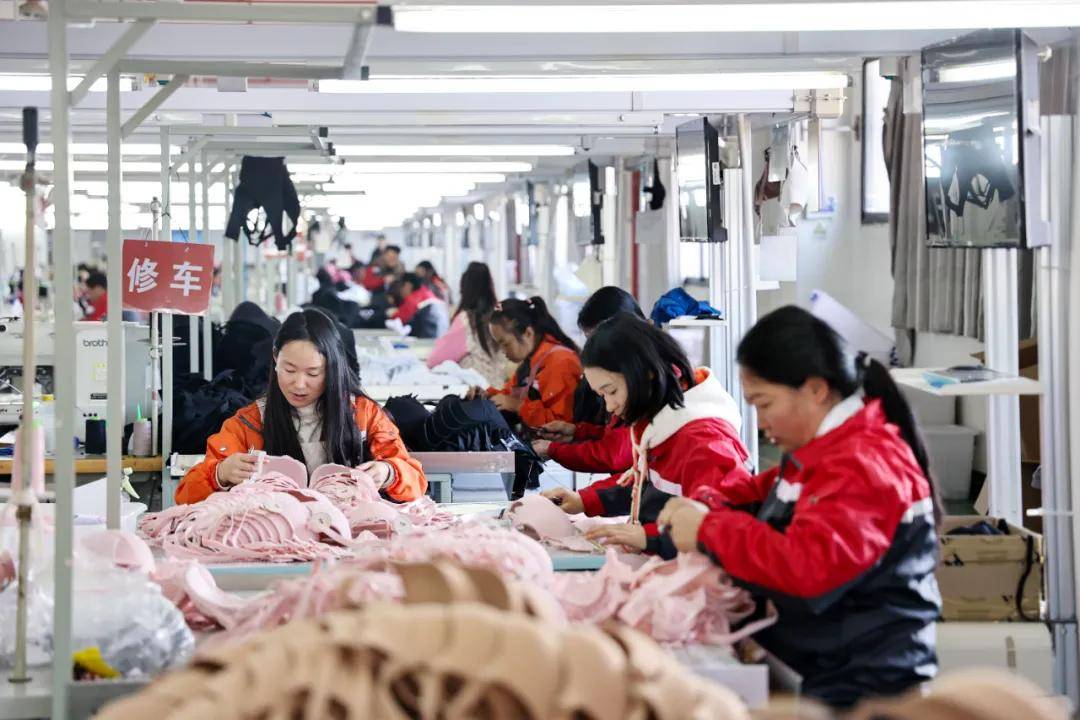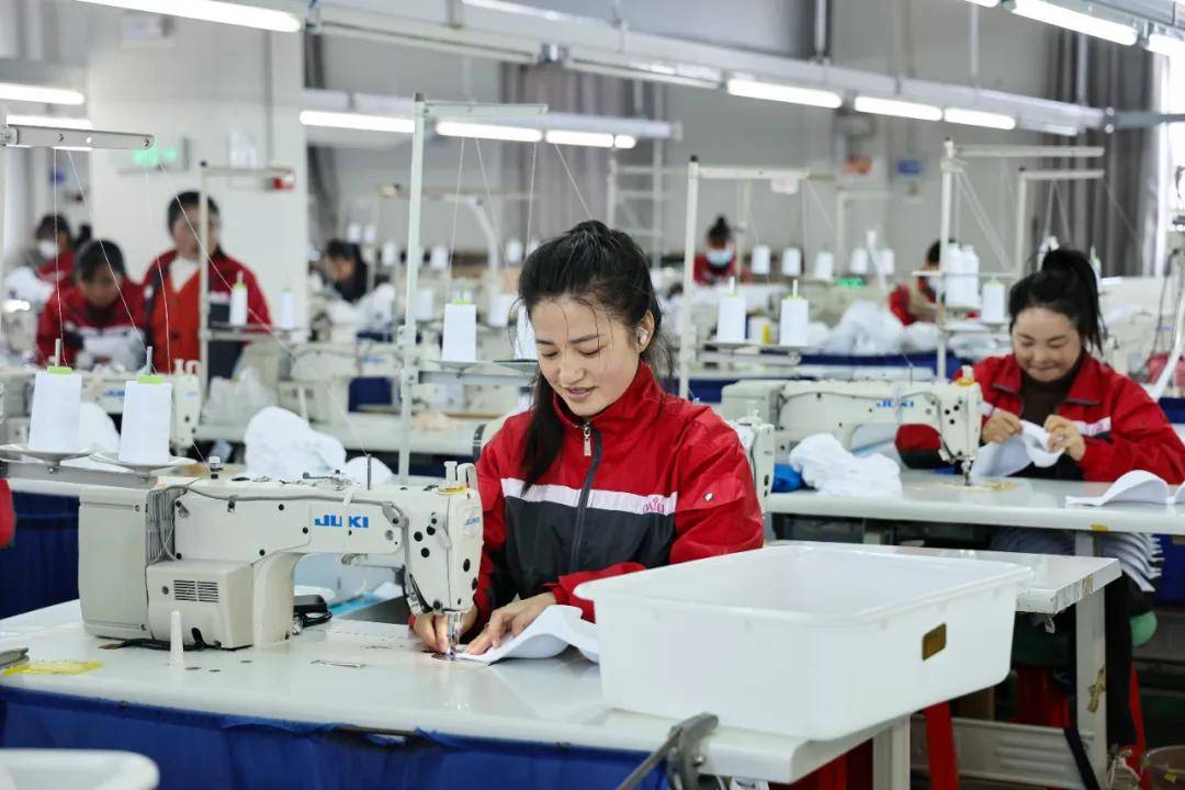 正在车间缝纫工位上忙碌的吴名威说:“我家是雪山镇的,2023年开始就一直在这里上班,一个月工资5000元左右。以前去外地务工一年回家一次,现在在家门口就业,方便得很。”
