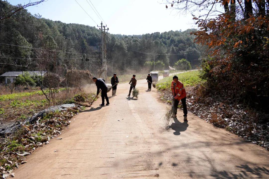 保洁员和护林员正在清扫村道
