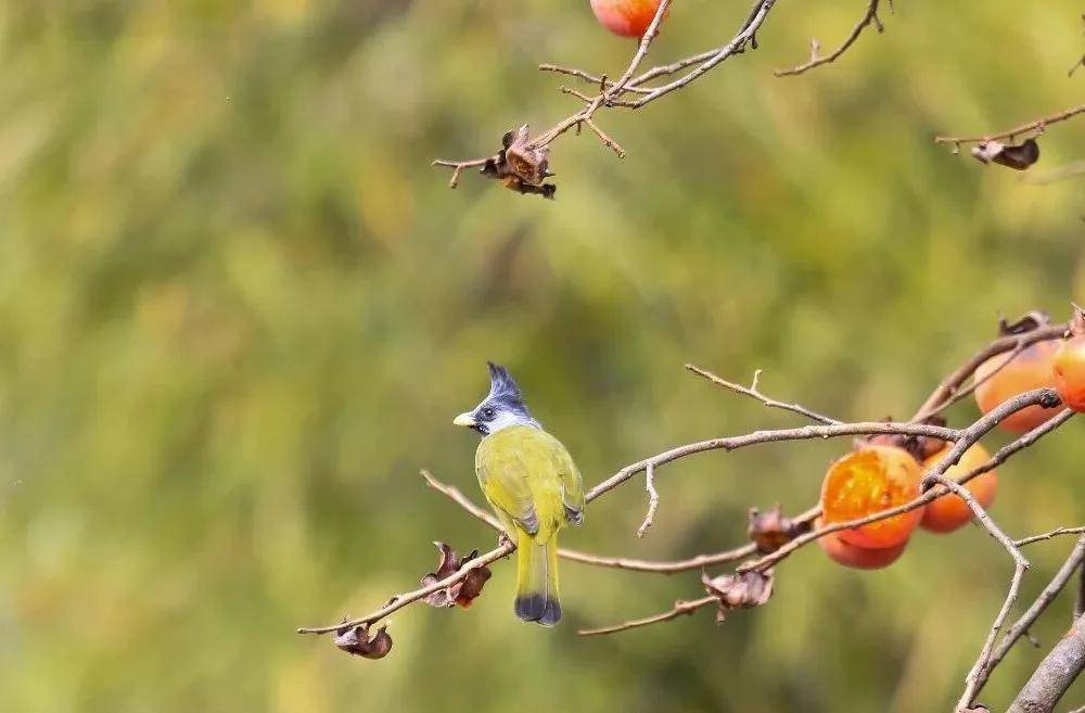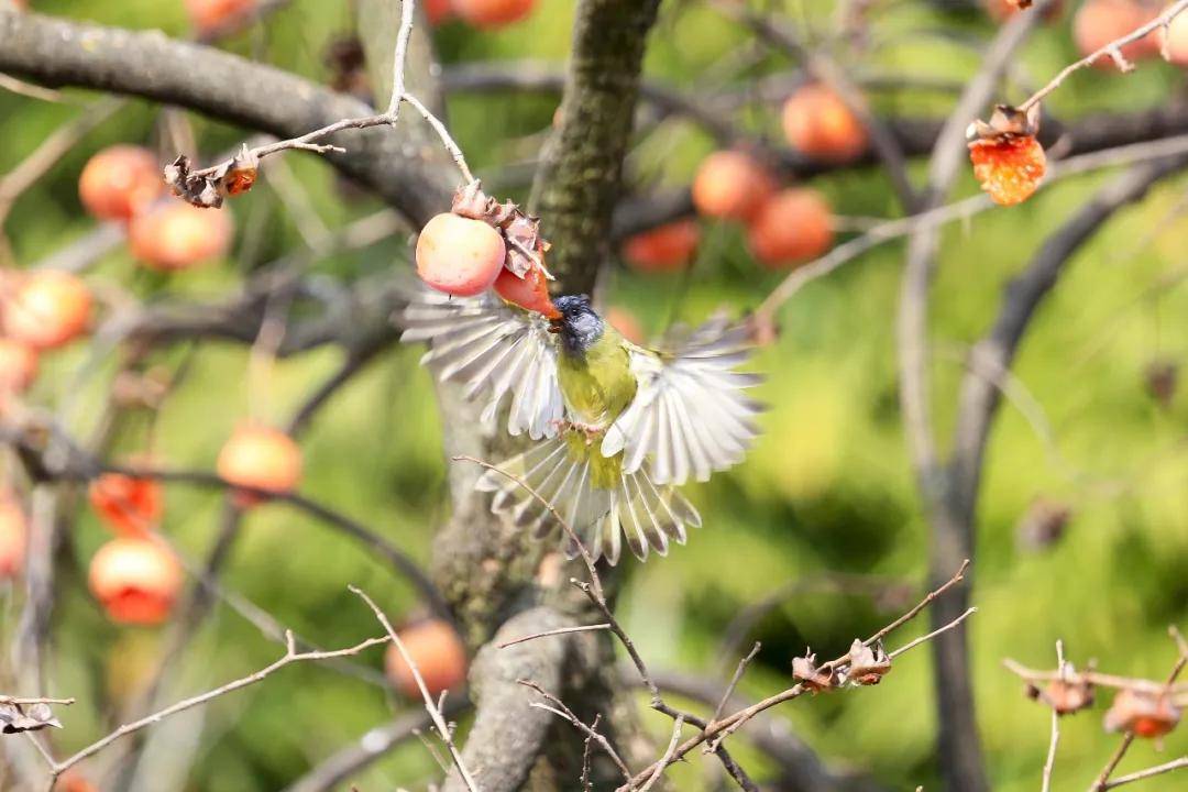 金黄的柿子树枝头热闹非凡