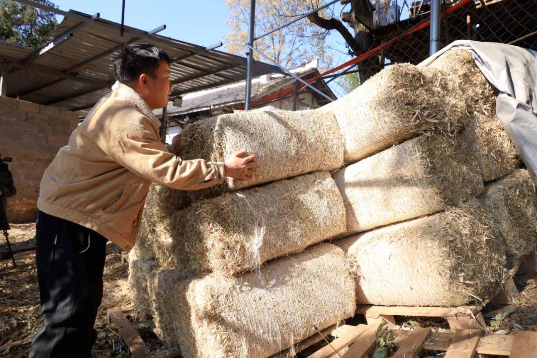 管洪林正在整理草料