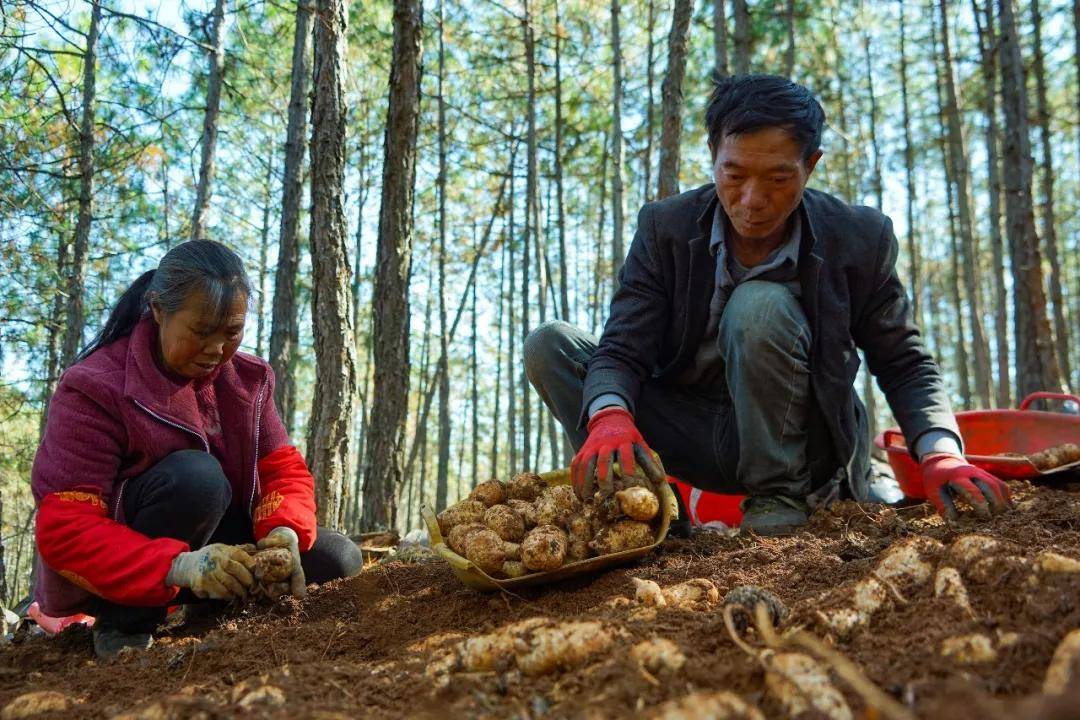“采收天麻可是个技术活,刨土的时候要小心些,不要弄破天麻表皮。”贵州驰峰农业科技有限公司负责人李培波一边查看天麻品质,一边给务工群众普及采收技巧。