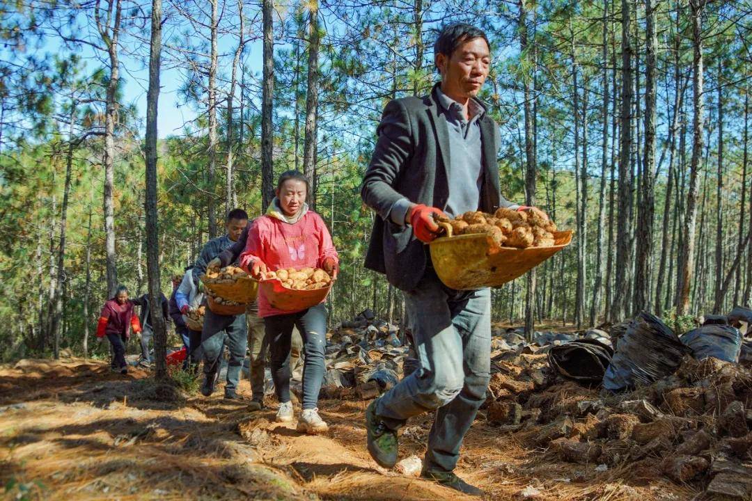 务工群众在转运刚采收的天麻(赵庆能 摄)