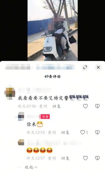 近日,一段三名少女以“叠罗汉”的方式前蹲后抱共同骑乘在一辆二轮电动摩托车上,且均未佩戴安全头盔的视频在网络传播,引发网友关注并@交警部门。
